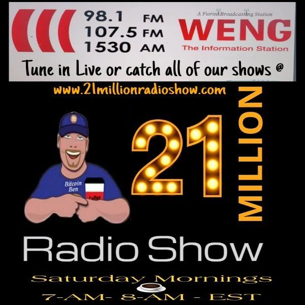 Launched in the Fall of 2022, the 21 Million Radio Show features Bitcoin Ben and industry guests who teach listeners about the new decentralized economy, Bitcoin, and cryptocurrency. True to the Bitcoin Ben style, each show is injected with humor, history, patriotism, and current events in this new shared economy! Click here to listen to Ben on the radio!
